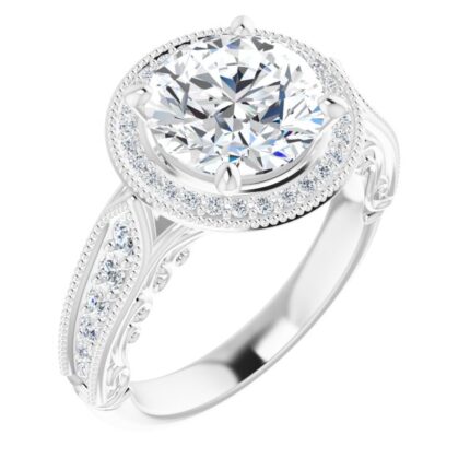 Accented Vintage-Inspired Engagement Ring with style 124061