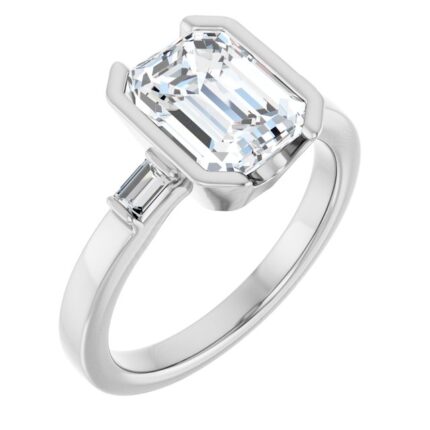 Half-Bezel Baguette Accented Engagement Ring with style 122456